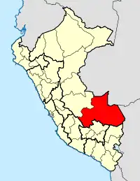 Il comprend le département de Madre de Dios ; une partie du département de Cuzco avec la province de La Convención et un district de la province de Quispicanchi, les autres provinces du département de Cuzco étant gérées par le diocèse de Sicuani et l'archidiocèse de Cuzco ; une partie du département d'Ucayali avec la province de Purús et un district de la province d'Atalaya, le reste de ce département étant sous juridiction des vicariats apostoliques de Pucallpa et San Ramón.