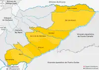 Il comprend les municipalités de Maní, Orocué, San Luis de Palenque et Trinidad ainsi qu'une partie des municipalités de Hato Corozal, Paz de Ariporo et Tauramena (dont l'autre partie est dans le diocèse de Yopal) dans le département de Casanare.