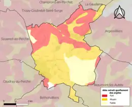 La commune est vulnérable au risque de mouvements de terrains constitué principalement du retrait-gonflement des sols argileux[16]. Cet aléa est susceptible d'engendrer des dommages importants aux bâtiments en cas d’alternance de périodes de sécheresse et de pluie. 82 % de la superficie communale est en aléa moyen ou fort (52,8 % au niveau départemental et 48,5 % au niveau national). Sur les 193 bâtiments dénombrés sur la commune en 2019, 158 sont en aléa moyen ou fort, soit 82 %, à comparer aux 70 % au niveau départemental et 54 % au niveau national. Une cartographie de l'exposition du territoire national au retrait gonflement des sols argileux est disponible sur le site du BRGM[17],[18].