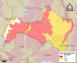 Le retrait-gonflement des sols argileux est susceptible d'engendrer des dommages importants aux bâtiments en cas d’alternance de périodes de sécheresse et de pluie. 95,5 % de la superficie communale est en aléa moyen ou fort (84,7 % au niveau départemental et 48,5 % au niveau national). Sur les 503 bâtiments dénombrés sur la commune en 2019, 494 sont en aléa moyen ou fort, soit 98 %, à comparer aux 86 % au niveau départemental et 54 % au niveau national. Une cartographie de l'exposition du territoire national au retrait gonflement des sols argileux est disponible sur le site du BRGM[24],[25].