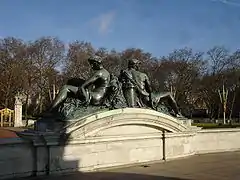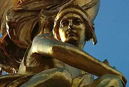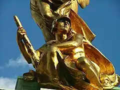 Au sommet du monument, situé sur une plate-forme circulaire, se trouve une effigie de la Victoire ailée avec deux statues assises, représentant le Courage et la Constance, le tout en bronze doré.
