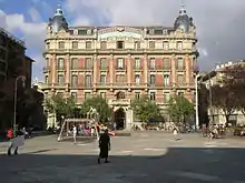 - Edificio La Agrícola : construit pour la banque et les assurances La Agrícola. C'est une conception de Francisco de Urcola de 1910 et achevé en 1913. Des années plus tard ce fut le Gran Hotel de luxe, fermé en 1934, et pendant une période, entre 1914 et 1924, le Gobierno Civil avec entrée par la nouvelle rue. C'est depuis 1972 la bibliothèque municipale . C'est un bâtiment aux proportions inhabituelles dans l'architecture civile du Casco Viejo de Pampelune. Il a une grande richesse et une variété d'éléments, avec la singularité de ses angles arrondis couronnés avec des coupoles et mosaïque au coloris de dessin végétal sur son fronton central. Un exemple d'architecture éclectique avec quelques touches modernistes.