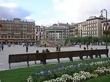 - Plaza del Castillo: est considérée comme "la place où il faut être" par les Pamplonais. Le premier château, a été construit dans le centre de la place, par le roi Louis X dit le Hutin, entre 1308 et 1311. Quand on a reconstruit les parois, pour entourer toute la ville, ce château se trouvait trop dans la ville, et Ferdinand le Catholique, commande l'édification en 1513, en utilisant les pierres du vieux château, disparu vers 1540. Finalement, vers 1590, avec la citadelle en construction avancée, on a démoli ce dernier château.