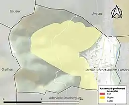 Le retrait-gonflement des sols argileux est susceptible d'engendrer des dommages importants aux bâtiments en cas d’alternance de périodes de sécheresse et de pluie. La totalité de la commune est en aléa faible (44,5 % au niveau départemental et 48,5 % au niveau national). Sur les 70 bâtiments dénombrés sur la commune en 2019, aucun n'est en aléa moyen ou fort, à comparer aux 75 % au niveau départemental et 54 % au niveau national. Une cartographie de l'exposition du territoire national au retrait gonflement des sols argileux est disponible sur le site du BRGM[23],[Carte 3].