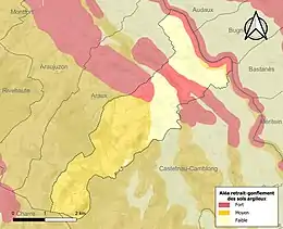 Le retrait-gonflement des sols argileux est susceptible d'engendrer des dommages importants aux bâtiments en cas d’alternance de périodes de sécheresse et de pluie[32]. 68,2 % de la superficie communale est en aléa moyen ou fort (59 % au niveau départemental et 48,5 % au niveau national)[Carte 5]. Depuis le , en application de la loi ELAN, différentes contraintes s'imposent aux vendeurs, maîtres d'ouvrages ou constructeurs de biens situés dans une zone classée en aléa moyen ou fort[Note 6],[33].
