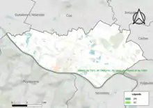 L'occupation des sols de la commune, telle qu'elle ressort de la base de données européenne d’occupation biophysique des sols Corine Land Cover (CLC), est marquée par l'importance des territoires agricoles (91 % en 2018), néanmoins en diminution par rapport à 1990 (97,5 %). La répartition détaillée en 2018 est la suivante : terres arables (53,4 %), prairies (23 %), zones agricoles hétérogènes (14,6 %), zones urbanisées (9,1 %)[22]. L'évolution de l’occupation des sols de la commune et de ses infrastructures peut être observée sur les différentes représentations cartographiques du territoire : la carte de Cassini (XVIIIe siècle), la carte d'état-major (1820-1866) et les cartes ou photos aériennes de l'IGN pour la période actuelle (1950 à aujourd'hui)[Carte 2].