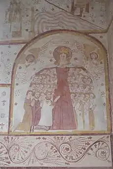 - Saint-Céneri-le-Gérei, Vierge au manteau XIVe peinture murale Église Saint-Céneri, Vierge de miséricorde Christian Malézieux[3].