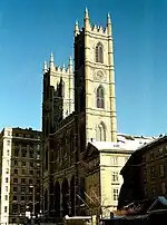 Il en est de même pour les édifices institutionnels comme le Vieux Palais de Justice, la Douane, le Marché Bonsecours et même la Basilique Notre-Dame dont la façade est l’œuvre d’un Irlandais protestant de New York, James O’Donnell. La seule exception notable sera l'hôtel de ville de Montréal, inspiré de l'hôtel de ville de Rennes. Par rapport aux constructions en pierre des champs pratiquées sous le régime français, le style victorien qui s’impose dans la seconde moitié du XIXe siècle modifie considérablement l’aspect du Vieux-Montréal.