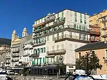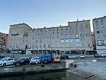 Le Vieux-Port de Bastia ayant durement été touché par les bombardements américains en 1943, une partie de ses immeubles sont à reconstruire. Ce sera le cas de l'immeuble appelé « Pouillon », qui est conçu après guerre par les architectes Fernand Pouillon et Louis de Casabianca[5].