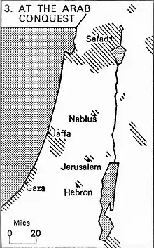 Dans cet intervalle, une faible présence juive se maintient. Elle est cependant mise à mal par les guerres et décrets édictés aux époques byzantine, arabe et croisée. Le yishouv souffre également à l'époque mamelouke et ne se relève qu'à la période ottomane.
