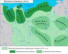 Carte représentant l'emplacement des tribus léchites au IXe siècle.