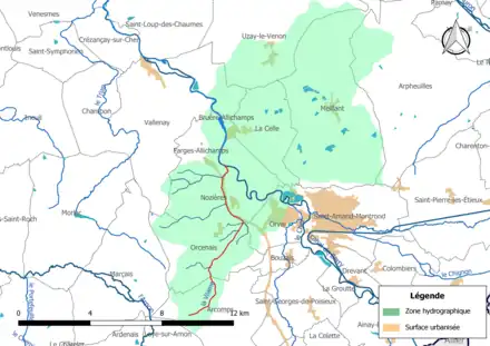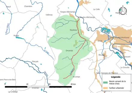 | Sources : SANDRE:« Fiche cours d'eau (K5454300) », Géoportail | |