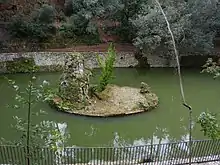 Dans la partie la plus en amont du parc se trouve le lac artificiel conçu par Alessi, alimenté par le Rio Archetti, avec un îlot elliptique au centre avec des jeux d'eau et des statues de nymphes et de faunes. Quelques années après sa construction, le lac et l'îlot ont été mentionnés par Vasari parmi les œuvres créées à Gênes par le « fameux et très célèbre architecte, Galeazzo Alessi », « créateur d'eaux et de fontaines, réalisées de différentes manières belles et fantaisistes » [3],[9].