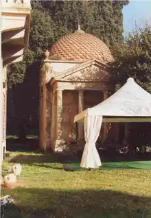 La villa est située dans une position élevée et prédominante par rapport à l'entrée du jardin. Il s'agit d'un bâtiment simple, de plan rectangulaire, surmonté d'une tourelle crénelée. Sur le côté frontal, il y a une loggia. Entre les escaliers qui relient le portique de la villa et la pelouse de devant, se trouve un bassin en marbre, surmonté d'une mosaïque avec une coquille en relief. Sur le côté est de la villa, en retrait, se trouve une petite chapelle qui rappelle le modèle du Panthéon. Isolé au nord de la villa, entre le parking et l'allée, se trouve un petit temple de style néoclassique, un tholos en pietra serena, de plan circulaire et recouvert d'une coupole en briques plâtrées. Le cellier est situé à côté des rampes côté ouest ; comme l’ensemble de la zone, il n’est pas accessible en raison des conditions dans lesquelles il se trouve. Les serres, désormais inutilisables, sont situées sur les côtés de l'escalier qui mène à la pelouse devant la villa.