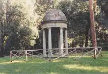Le complexe original est délimité par une grille avec une base en maçonnerie, tandis que les nouvelles acquisitions sont clôturées avec un grillage métallique et fermées par des portails en fer. L'entrée monumentale dans la Via Vittorio Emanuele II se caractérise par un imposant portail fait d'une grille en fer, sur les côtés duquel se trouvent deux propylées. Les différents niveaux du jardin sont contenus par des murs plâtrés, surmontés en partie de garde-corps en fer forgé. L'étage de la villa est délimité par un muret et une balustrade avec portail du côté qui donne sur l'entrée du jardin.