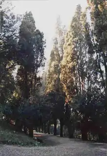 Exemplaires de plantes : 1. Washingtonia filifère ; 2. Pinus halepensis ; 3. Pinus pinéa ; 4. Eriobotrya japonica ; 5. Quercus ilex ; 6. Cupressus sempervirens ; 7. Chamaerops humilis ; 8. Taxus baccata ; 9. Cedrus déodara ; dix. Aesculus x carnée ; 11. Thuya occidentalis ; 12. Cedrus atlantica ; 13. Aesculus hippocastanum ; 14. Trachycarpus fortunei ; 15. Quercus suber ; 16. Quercus robur ; 17. Gleditsia triacanthos ; 18. Calocèdre decurrens ; 19. Diospyros virginiana ; 20. Cercis siliquastrum ; 21. Tilia spp.