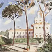 | John Warwick Smith, La Villa Médicis à Rome[11] | aquarelle et crayon sur papier, 41,3 × 57,8 cm, 1784, Centre d'art britannique de Yale (New Haven, Connecticut) | ![]() |