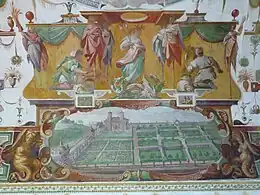 Les images les plus anciennes de la villa Médicis à Rome et de son jardin sont dans les fresques à grotesque de Jacopo Zucchi, au studiolo du cardinal.
