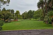 Dans la zone la plus au sud de la propriété, une vaste pelouse au sein d'un jardin à l'anglaise caractérise l'environnement, en plus de la présence de ruisseaux qui coulent sous les cyprès, les pins domestiques, les chênes verts, les lauriers et les caroubiers. D'autres éléments de la flore du parc sont le cèdre blanc, les palmiers, un chêne-liège, en plus des oliviers, des cèdres, des noisetiers, des laburnum, des chênes et des camélias.