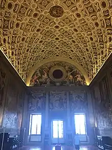 Le salon Léon X, placé au centre de l'édifice, fut terminé vers 1513. Le plafond est dû au moins en partie à Sangallo. Les fresques constituent l’un des cycles les plus importants de la période du maniérisme.