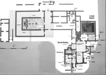 Le noyau originel datant peut-être des Ier et IIe siècles a fait l'objet de rénovations, d'agrandissements et de modifications successives au cours des IIIe et Ve siècles [6]. Il se compose de deux zones contiguës, avec des entrées indépendantes et des caractéristiques constructives et dimensionnelles différentes. Les Petits Bains au nord-ouest des Grands Bains semblent être plus récents et destinés à être une alternative ou un remplacement, peut-être en raison de problèmes techniques ou de leur taille considérable et une utilisation réduite.
