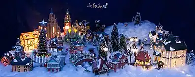 L'image moderne des villages de Noël remonte à la fin du XXe siècle et plus précisément durant les années 1970, durant lesquelles les miniatures en céramique, faïence ou porcelaine se démocratisèrent fortement. Le fabricant américain Department 56, fondé à Minneapolis en 1976[6], fut l'un des premiers à réaliser ces bâtiments[7]. En 1990, c'est la marque hongkongaise Lemax qui vit le jour[8],[9] et qui aujourd'hui reste l'une des plus célèbres dans le domaine des villages de Noël, bien qu'elle ne soit arrivé en Europe qu'en 2006[10] où les marques néerlandaises Luville, MyVillage et Dickensville étaient aussi déjà grandement établies.