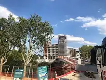 Les travaux commencent par le déplacement et l'expropriation de certaines entreprises encore sur place, pour totalement raser le terrain afin de pouvoir l'aplatir[4],[12]. Le chantier par sa taille conséquente mobilise quotidiennement entre 2021 et 2023 1400 à 1900 ouvriers et 49 grues, ce qui en fait ainsi l'un des plus grands chantiers urbains d'Europe à cette période[13],[14].