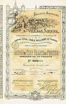 Le Village suisse est à l'origine une reconstitution pittoresque de village suisse idéalisé, destiné à la visite, dont le concept architectural et ethnographique et la première concrétisation sont nés dans le cadre de l'Exposition nationale suisse de 1896 à Genève, puis repris à l'occasion de l'Exposition universelle de 1900 à Paris.