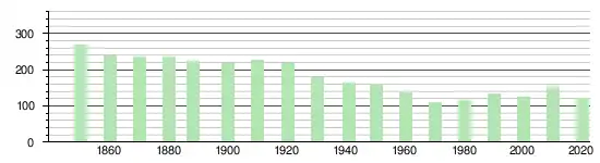 En 2020, le taux de personnes de moins de 30 ans s'élève à 25,5 %, au-dessous de la valeur cantonale (35 %). Le taux de personnes de plus de 60 ans est quant à lui de 37,6 %, alors qu'il est de 21,9 % au niveau cantonal[11].