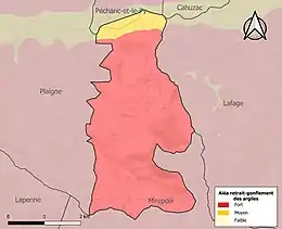 Le retrait-gonflement des sols argileux est susceptible d'engendrer des dommages importants aux bâtiments en cas d’alternance de périodes de sécheresse et de pluie. La totalité de la commune est en aléa moyen ou fort (75,2 % au niveau départemental et 48,5 % au niveau national). Sur les 35 bâtiments dénombrés sur la commune en 2019, 35 sont en aléa moyen ou fort, soit 100 %, à comparer aux 94 % au niveau départemental et 54 % au niveau national. Une cartographie de l'exposition du territoire national au retrait gonflement des sols argileux est disponible sur le site du BRGM[18],[Carte 3].