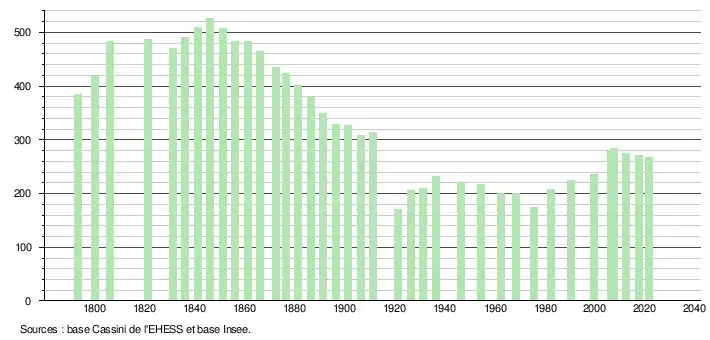 - Population municipale légale en vigueur au 1er janvier 2024, millésimée 2021, définie dans les limites territoriales en vigueur au 1er janvier 2023, date de référence statistique : 1er janvier 2021.