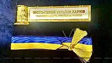 Ville héros d'Ukraine est un titre honorifique ukrainien attribué aux villes ukrainiennes dont les habitants se sont héroïquement battus au cours de la guerre contre la Russie. Le titre a été créé le 6 mars 2022 pour les villes de Volnovakha, Hostomel, Marioupol, Kharkiv, Kherson et Tchernihiv[1]. Cette distinction pour les villes correspond au Héros d'Ukraine.