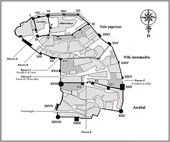 - (ca) Cet article est partiellement ou en totalité issu de l’article de Wikipédia en catalan intitulé « Dalt Vila » (voir la liste des auteurs).
