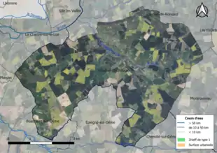 L'occupation des sols est marquée par l'importance des espaces agricoles et naturels qui occupent la quasi-totalité du territoire communal. Un espace naturel d'intérêt est présent sur la commune : une zone naturelle d'intérêt écologique, faunistique et floristique (ZNIEFF). En 2010, l'orientation technico-économique de l'agriculture sur la commune est la culture des céréales et des oléoprotéagineux. À l'instar du département qui a vu disparaître le quart de ses exploitations en dix ans, le nombre d'exploitations agricoles a fortement diminué, passant de 19 en 1988, à 27 en 2000, puis à 22 en 2010.