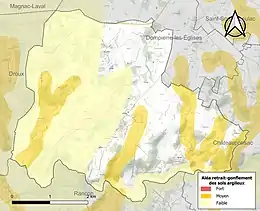 Le retrait-gonflement des sols argileux est susceptible d'engendrer des dommages importants aux bâtiments en cas d’alternance de périodes de sécheresse et de pluie[17]. 20,4 % de la superficie communale est en aléa moyen ou fort (27 % au niveau départemental et 48,5 % au niveau national métropolitain)[Carte 2]. Depuis le , en application de la loi ÉLAN, différentes contraintes s'imposent aux vendeurs, maîtres d'ouvrages ou constructeurs de biens situés dans une zone classée en aléa moyen ou fort[Note 3],[18].