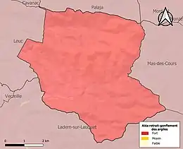 Le retrait-gonflement des sols argileux est susceptible d'engendrer des dommages importants aux bâtiments en cas d’alternance de périodes de sécheresse et de pluie. La totalité de la commune est en aléa moyen ou fort (75,2 % au niveau départemental et 48,5 % au niveau national). Sur les 92 bâtiments dénombrés sur la commune en 2019, 92 sont en aléa moyen ou fort, soit 100 %, à comparer aux 94 % au niveau départemental et 54 % au niveau national. Une cartographie de l'exposition du territoire national au retrait gonflement des sols argileux est disponible sur le site du BRGM[24],[Carte 3].
