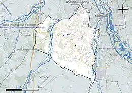 La superficie cadastrale de la commune publiée par l’Insee, qui sert de références dans toutes les statistiques, est de 11,46 km2[11],[Note 1]. La superficie géographique, issue de la BD Topo, composante du Référentiel à grande échelle produit par l'IGN, est quant à elle de 11,35 km2[9]. Son relief est relativement plat puisque la dénivelée maximale atteint 15 mètres. L'altitude du territoire varie entre 84 m et 99 m[14].