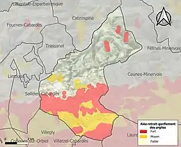 Le retrait-gonflement des sols argileux est susceptible d'engendrer des dommages importants aux bâtiments en cas d’alternance de périodes de sécheresse et de pluie. 45,3 % de la superficie communale est en aléa moyen ou fort (75,2 % au niveau départemental et 48,5 % au niveau national). Sur les 567 bâtiments dénombrés sur la commune en 2019, 548 sont en aléa moyen ou fort, soit 97 %, à comparer aux 94 % au niveau départemental et 54 % au niveau national. Une cartographie de l'exposition du territoire national au retrait gonflement des sols argileux est disponible sur le site du BRGM[29],[Carte 3].