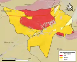 Les mouvements de terrains susceptibles de se produire sur la commune sont soit des chutes de blocs, soit des glissements de terrains, soit des effondrements liés à des cavités souterraines, soit des mouvements liés au retrait-gonflement des argiles. Près de 50 % de la superficie du département est concernée par l'aléa retrait-gonflement des argiles, dont la commune de Villeneuve-d'Olmes[34]. L'inventaire national des cavités souterraines permet par ailleurs de localiser celles situées sur la commune[35].