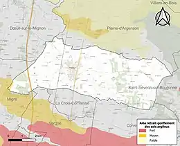 Le retrait-gonflement des sols argileux est susceptible d'engendrer des dommages importants aux bâtiments en cas d’alternance de périodes de sécheresse et de pluie. 0,3 % de la superficie communale est en aléa moyen ou fort (54,2 % au niveau départemental et 48,5 % au niveau national). Sur les 427 bâtiments dénombrés sur la commune en 2019, aucun n'est en aléa moyen ou fort, à comparer aux 57 % au niveau départemental et 54 % au niveau national. Une cartographie de l'exposition du territoire national au retrait gonflement des sols argileux est disponible sur le site du BRGM[12],[Carte 2].