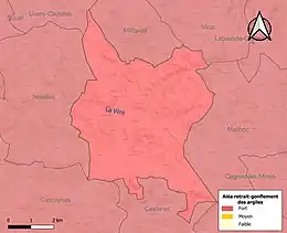 La commune est vulnérable au risque de mouvements de terrains constitué principalement du retrait-gonflement des sols argileux[23]. Cet aléa est susceptible d'engendrer des dommages importants aux bâtiments en cas d’alternance de périodes de sécheresse et de pluie. La totalité de la commune est en aléa moyen ou fort (76,3 % au niveau départemental et 48,5 % au niveau national). Sur les 237 bâtiments dénombrés sur la commune en 2019, 237 sont en aléa moyen ou fort, soit 100 %, à comparer aux 90 % au niveau départemental et 54 % au niveau national. Une cartographie de l'exposition du territoire national au retrait gonflement des sols argileux est disponible sur le site du BRGM[24],[Carte 3].