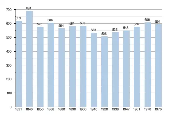 - Sources : INS, Rem. : 1831 jusqu'en 1970 = recensements, 1976 = nombre d'habitants au 31 décembre.