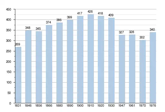 - Sources : INS, Rem. : 1831 jusqu'en 1970 = recensements, 1976 = nombre d'habitants au 31 décembre.