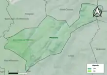 Le nombre d'exploitations agricoles en activité et ayant leur siège dans la commune est passé de 32 lors du recensement agricole de 1988[Note 13] à 29 en 2000 puis à 19 en 2010[30] et enfin à 14 en 2020[Carte 5], soit une baisse de 56 % en 32 ans. Le même mouvement est observé à l'échelle du département qui a perdu pendant cette période 67 % de ses exploitations[31],[Carte 6]. La surface agricole utilisée sur la commune a également diminué, passant de 217 ha en 1988 à 137 ha en 2020[Carte 7]. Parallèlement la surface agricole utilisée moyenne par exploitation a augmenté, passant de 7 à 10 ha[30].
