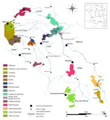 - Le coteaux-du-giennois : sols siliceux, graveleux et calcaires[21].