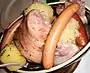 | Alsace | ![]() | Pommes de terre, viandes et légumes cuits avec des épices et du vin | Plat principal | Vin blanc | Vins d'Alsace | Cuisine alsacienne | |