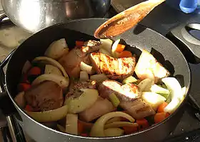 | Savoie | Poêlée montagnarde[125] | Pommes de terre, oignon, lardons, fromage et vin | Plat principal | Vin blanc | Vin de Savoie | Cuisine savoyarde | |