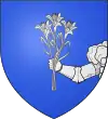 D'azur au dextrochère armé d'argent, sortant d'un nuage de même à senestre, et tenant trois lys au naturel.