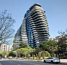 - Agora Garden (Tao Zhu Yin Yuan (en)) à Taipei (Taïwan), immeuble végétalisé de 25 étages de 45 000 m2, en forme de double hélice de molécule d'ADN, construit entre 2012 et 2018, avec 1 500 m2 de panneau solaire.