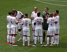 Vincent Planté (à droite) sous les couleurs du Red Star en . | ||